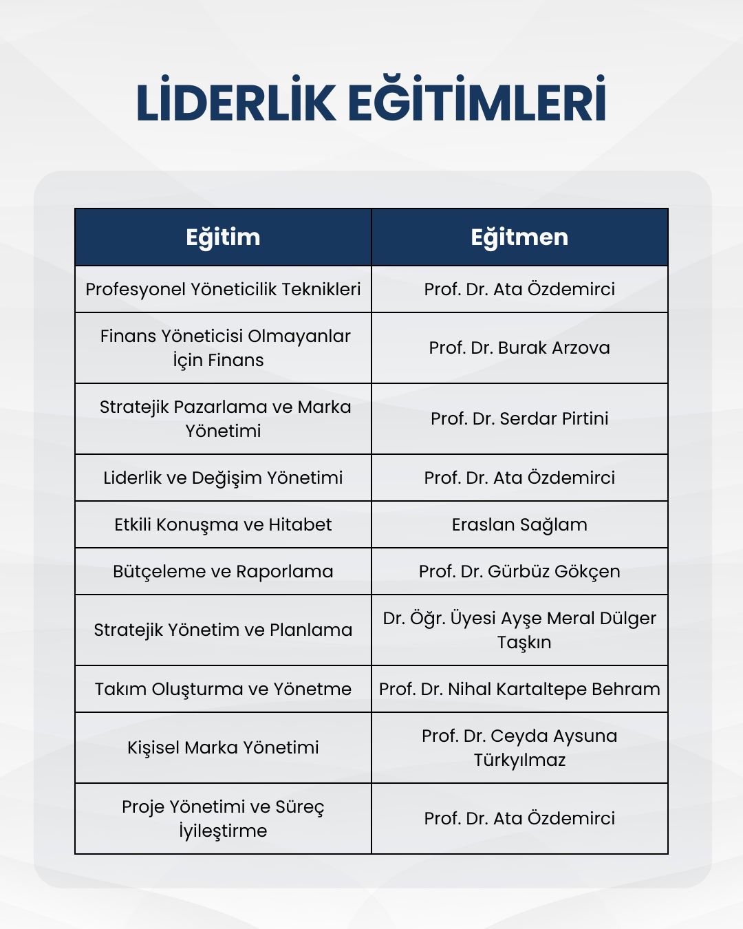 Liderlerinizi bilimsel bilgiler ve sosyal becerilerle güçlendirerek kurumunuzun gelişimine katkı sağlıyoruz